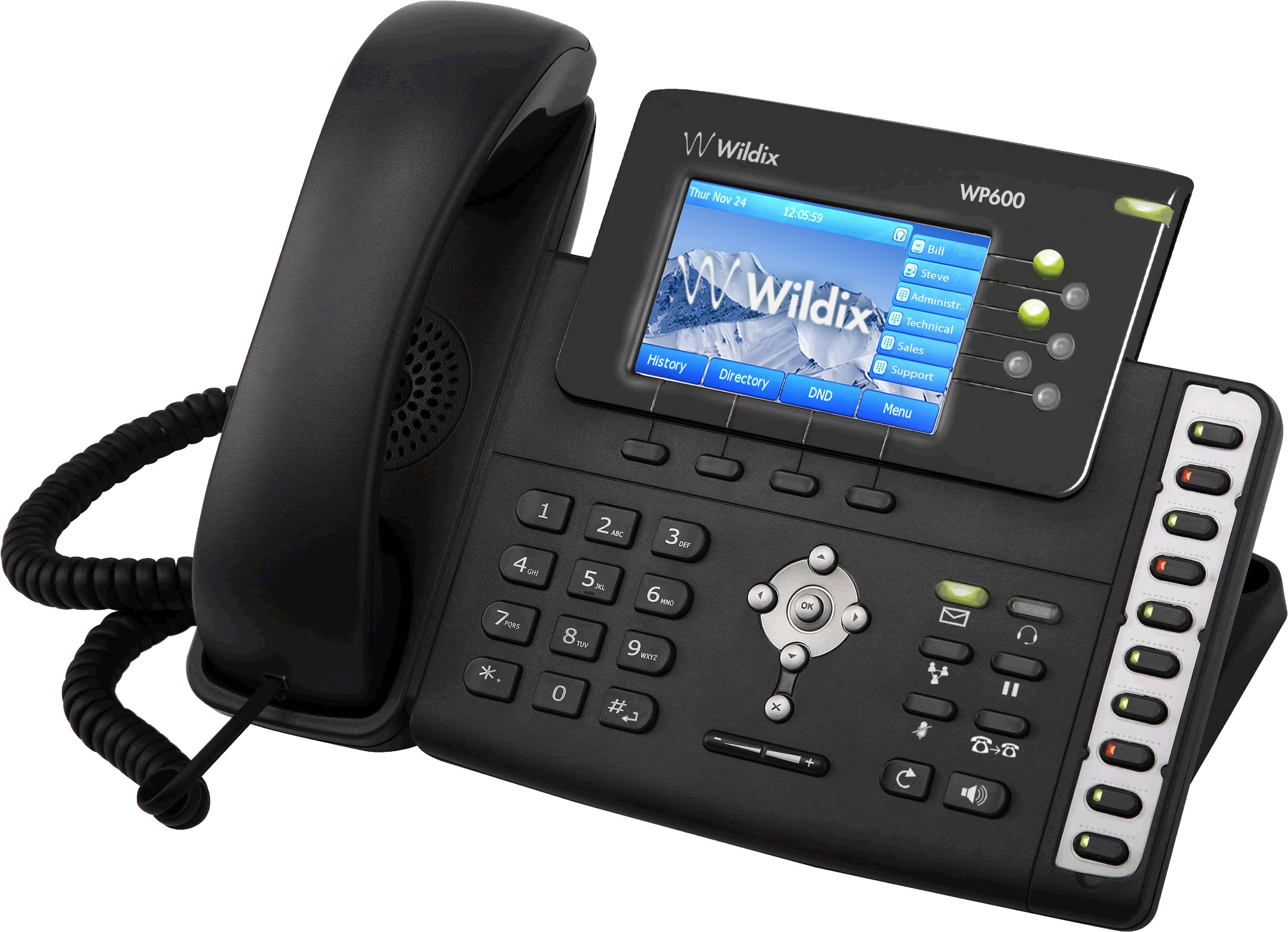 WP600 è il telefono con display a colori TFT ad alta risoluzione. Offre un’immagine vivida e brillante di tutte le informazioni relative all’attività telefonica. L’Audio HD wideband, inoltre, assicura un’esperienza audio di altissimo livello